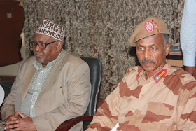 Muqdisho, Soomaaliya, Maarso 30,2011) Madaxweynaha Jamhuuriyadda Soomaliya Mudane Sharif. Sh. Axmed ayaa maanta xafiiskiisa ku dhaariyay Talliyaha Xooga Dalka Soomaaliyeed S/Guuto Cabdulqaadir Sheekh Cali Diini iyo Talliyaha Ciidanka Booliska Soomaaliyeed S/Guuto Dr. Shariif Sheekhuna Maye.